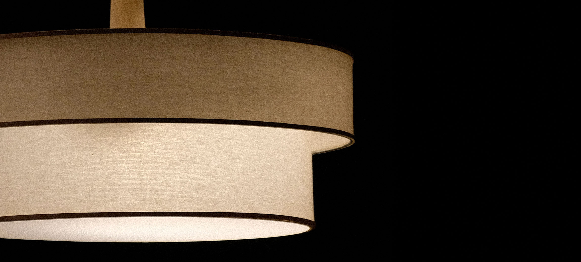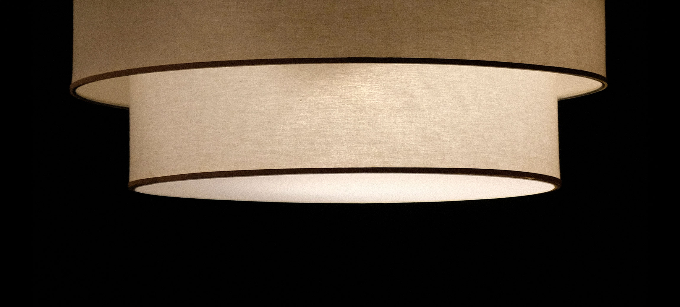 Hecha a mano en los talleres de INCREA, la lámpara Dos Aros Tela presenta una estructura metálica revestida con una cuidada selección de telas —voile, gross, granité blancos, lino crudo, arpillera y rafias exóticas— plastificadas en una cara para garantizar durabilidad sin perder ligereza.