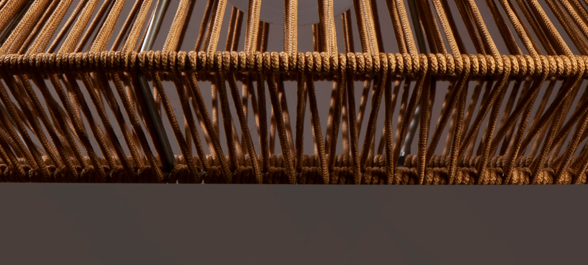 En INCREA tejemos esta versión de la Tajina aplicando las mismas técnicas artesanales que utilizamos en nuestro mobiliario: estructura metálica y entrelazado textil con cordones en una amplia paleta de colores. Su silueta particular le da una impronta única dentro de la colección, ampliando las posibilidades expresivas del tejido y la luz.